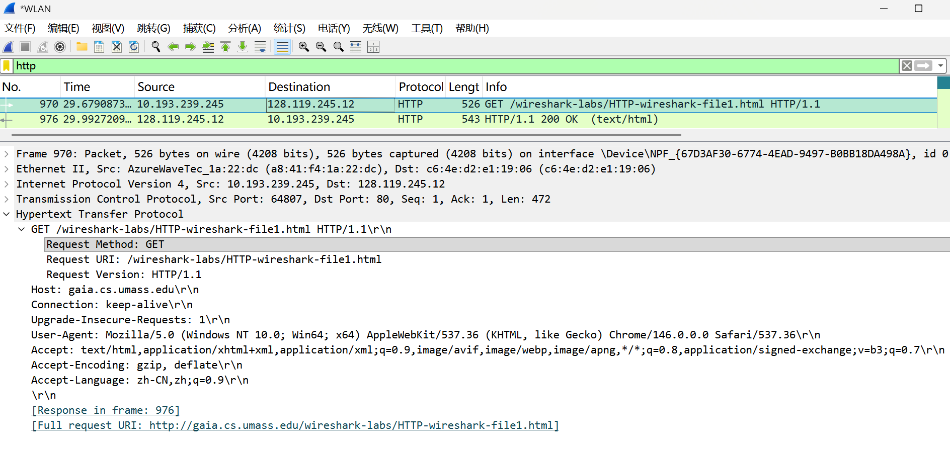 # 一. The Basic HTTP GET/response interaction