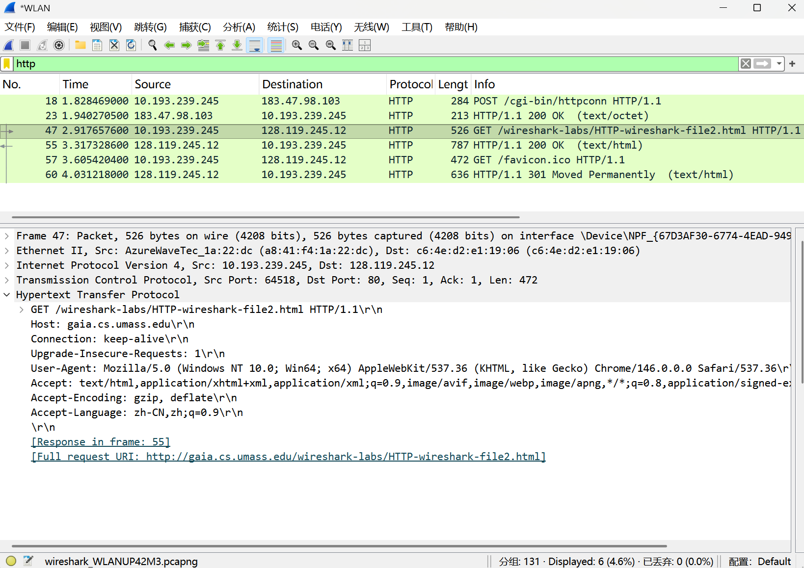 我的 IP 是 10.193.239.245;服务器 IP 是 128.119.245.12